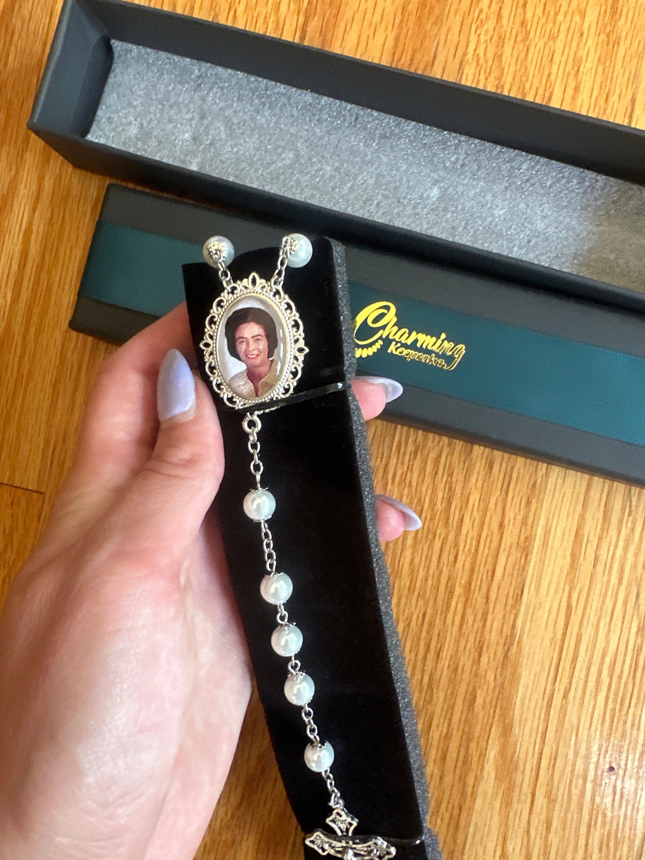 Charming keepsakes did a wonderful job retouching very old, granny photos. The rosary came out gorgeous and I can’t wait to use it on my wedding bouquet.