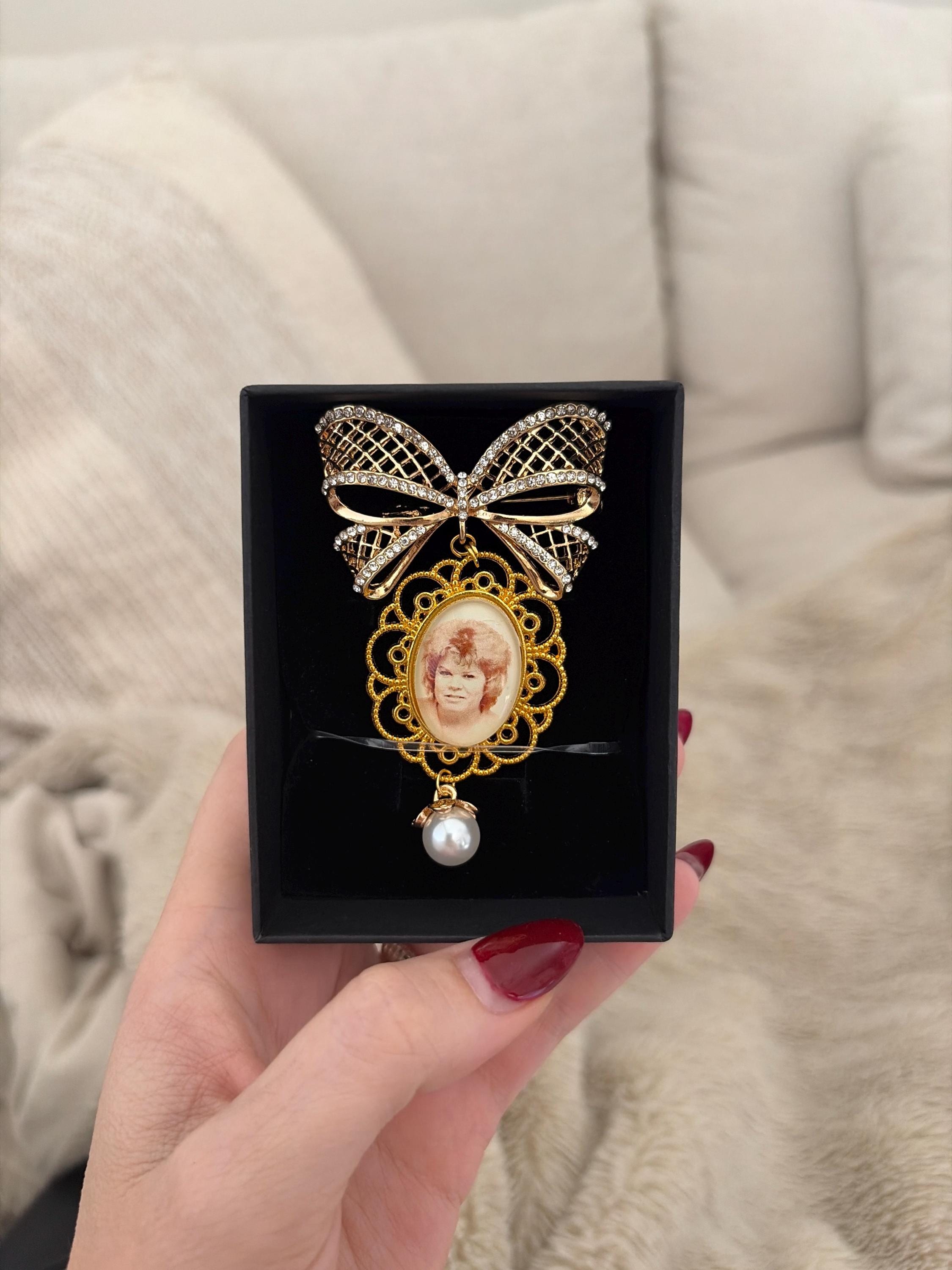 This piece exceeded my expectations. I am so happy my daughter will have her Papa on her bouquet for her wedding day. Gorgeous work!