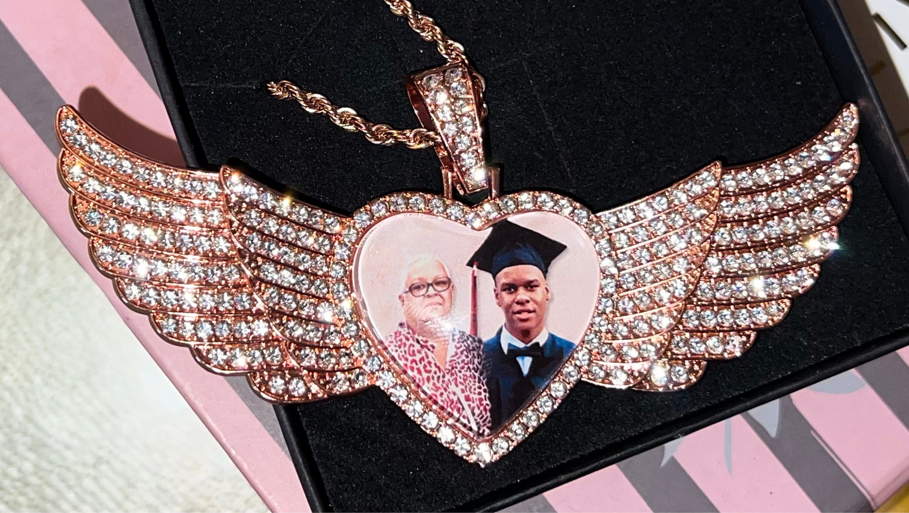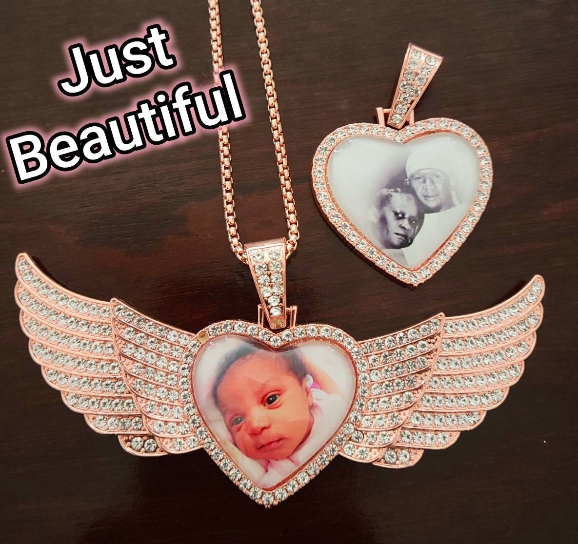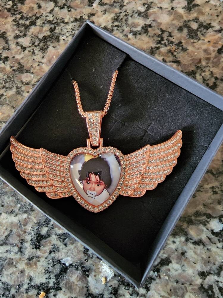 Rose Gold Jewelry is so popular now and sometimes hard to find in this style. You won’t regret purchasing this awesome Hip Hop Angel Wing Heart Medallion Pendant Necklace. Your photo is sealed under crystal clear glass lens which magnifies and creates a 3D effect so your photo will stand out beautifully! Guaranteed to bring tears of joy! Again, FREE First-Class Shipping to U.S. shoppers! If you order 3 items that ship to same address, I'll upgrade you to FREE Priority shipping so you can get it quicker (typically 2-3 days).