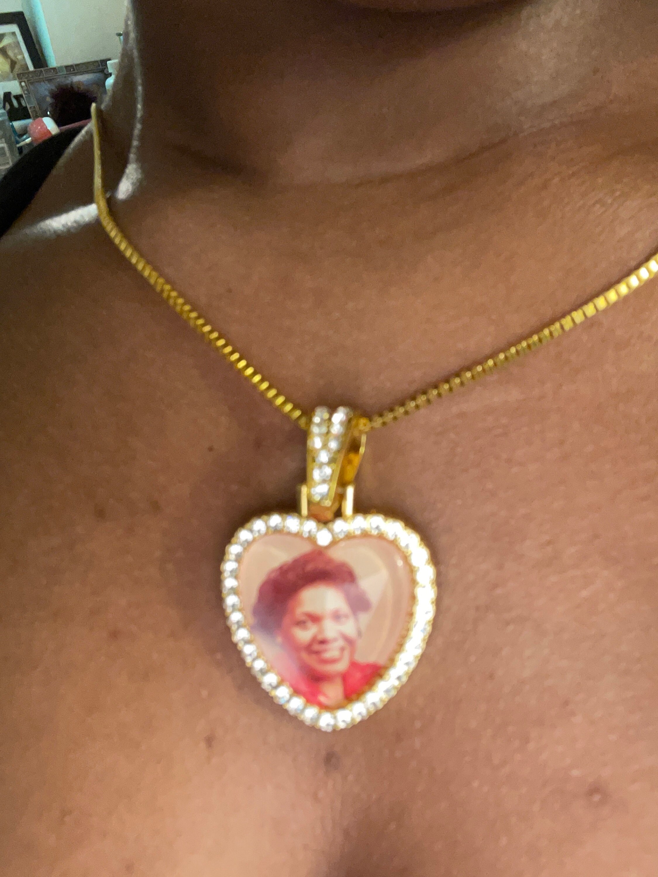 This Iced Out heart medallion is very popular now and sometimes hard to find in this style. We’ll crop and custom fit your 25mm photo to fit perfectly in your piece. You won’t regret purchasing this awesome Hip Hop Pendant Necklace which comes in 3 colors (Rose-Gold, Silver or Gold) and available in 2 sizes (the larger, 30mm is in another listing in my shop. NEW – We can also do DOUBLE-SIDED. Your photo is sealed under crystal clear glass lens which magnifies and creates a 3D effect so your photo will stand out beautifully! Guaranteed to bring tears of joy! Again, FREE First-Class Shipping to U.S. shoppers! If you order 3 items that ship to same address, I'll upgrade you to FREE Priority shipping so you can get it quicker (typically 2-3 days).