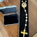 - Gold-tone filigree setting complements the rosary design