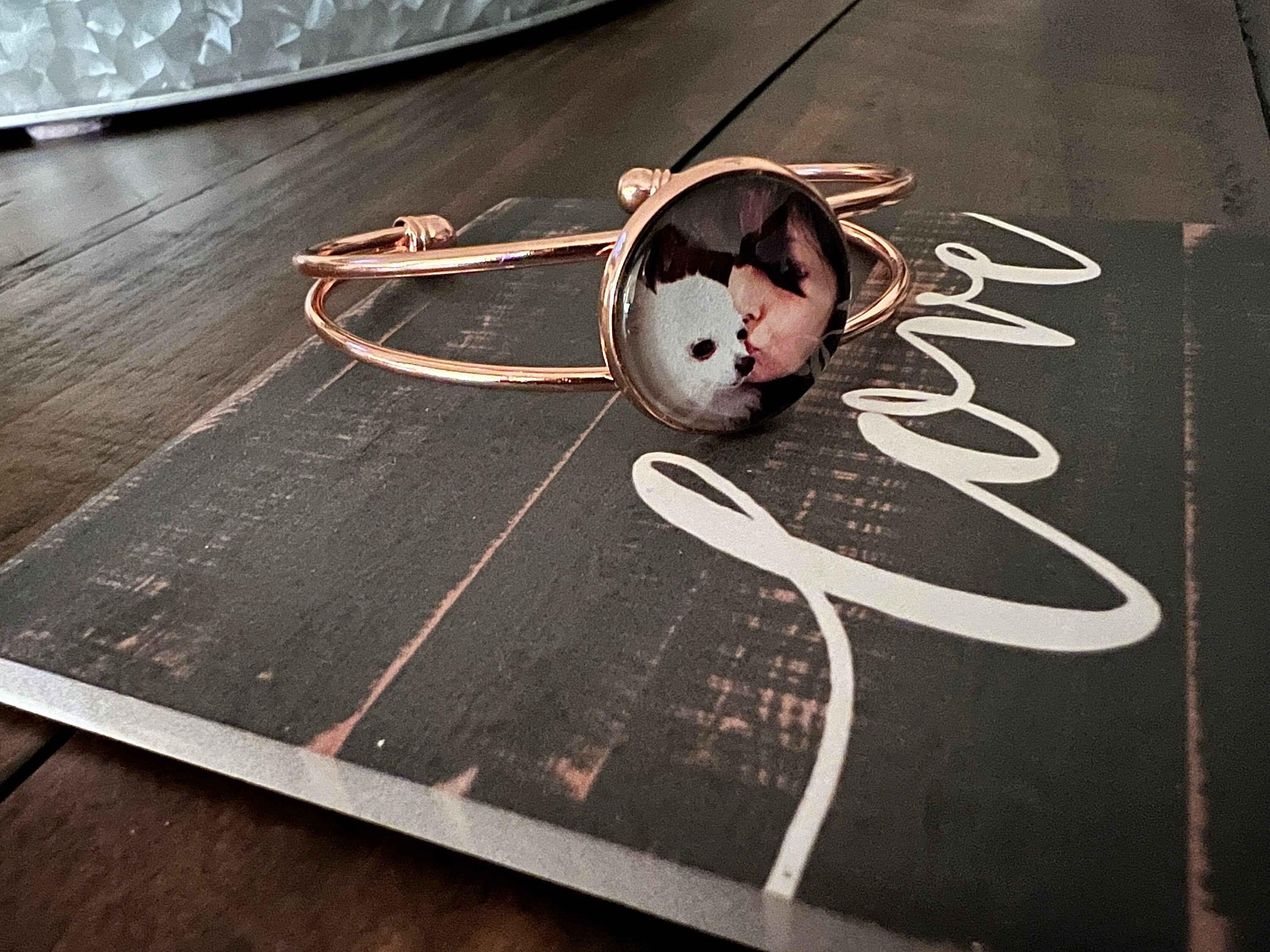 You can’t get anymore “personalized” if you tried!! This Photo Cuff Bangle Bracelet will truly be a one-of-kind gift from the heart. I will create this with your favorite pictures! These make great gifts for all occasions to Moms, Grandmas, Sisters, Bridesmaids, BFF’s, New Baby …you name it! They are sealed under crystal clear glass lens which magnifies and creates a 3D effect so your photo will stand out beautifully. One size fits all (except for very large wrists).